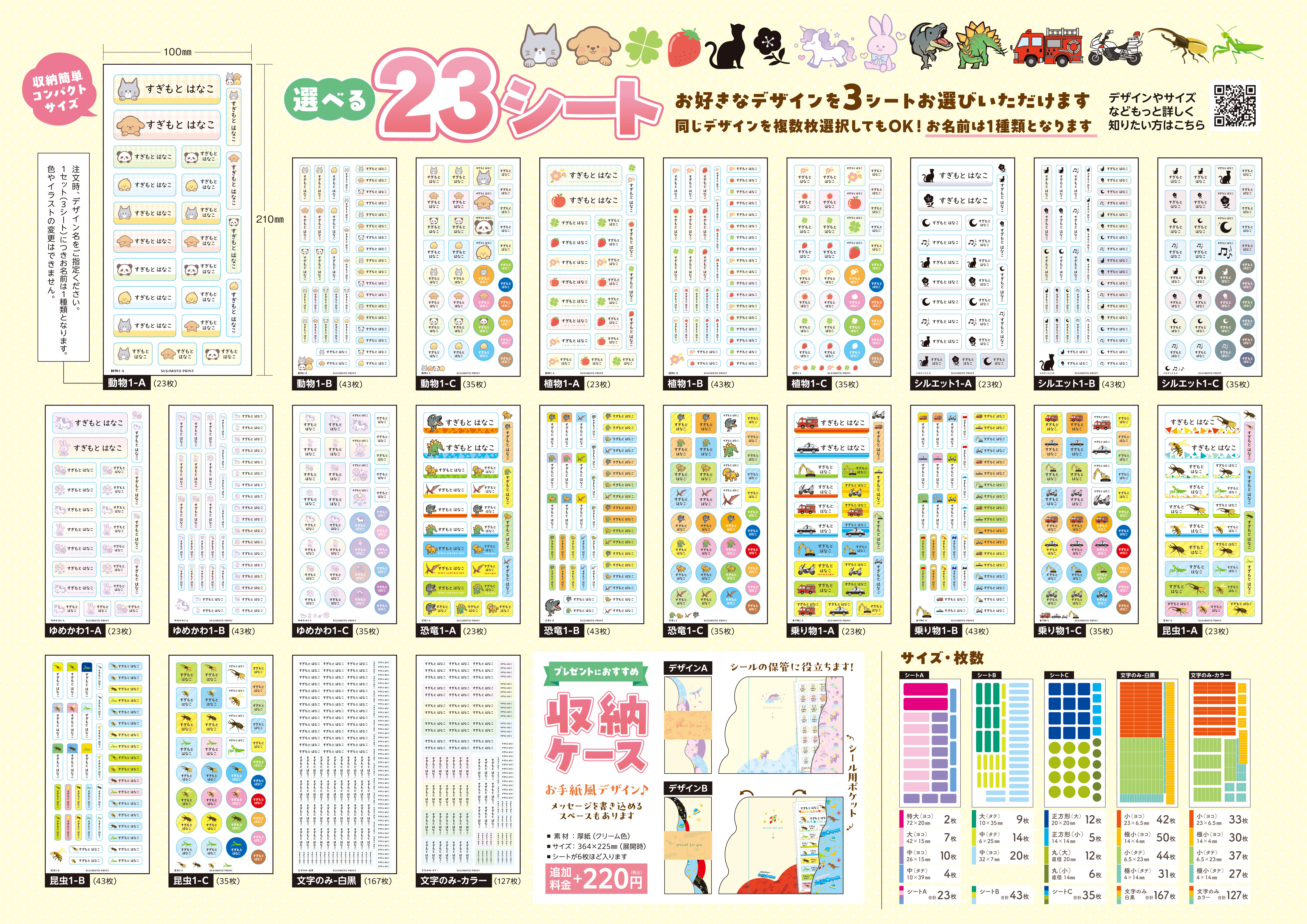 お好きなデザインを1セットにつき3シートお選びいただけます